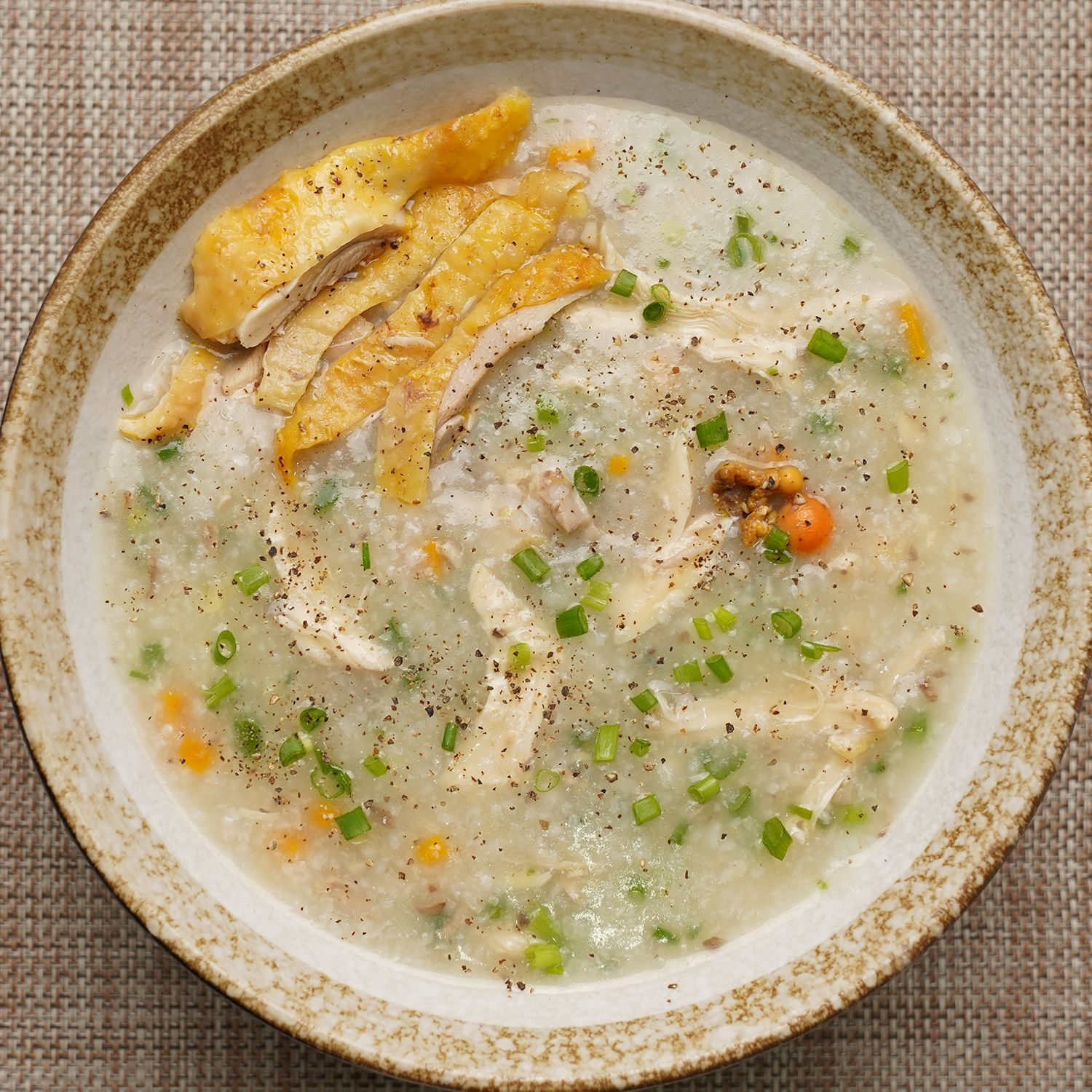 Cháo gà luôn là món đầu tiên được nhắc đến trong danh sách cháo bồi bổ. Thịt gà giàu protein dễ tiêu, ít cholesterol nên người đang gặp vấn đề về mỡ máu vẫn có thể ăn để bồi bổ. Thịt gà thuộc loại thịt trắng, chứa nhiều vitamin nhóm B, selen và phốt pho giúp tăng cường miễn dịch và chống oxy hóa.