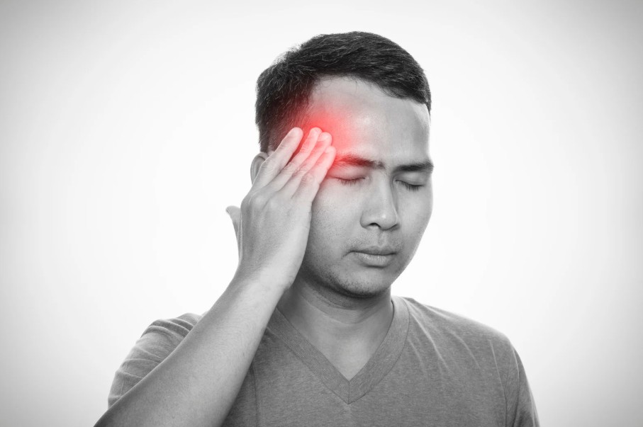 - Đau đầu âm ỉ, căng vùng trán hoặc sau gáy