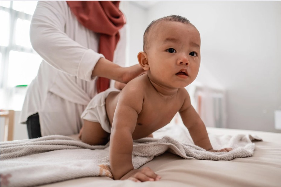 - Lưng (giữa hai bả vai): Đây là vùng gần phổi, khi được giữ ấm sẽ hỗ trợ hoạt động hô hấp của trẻ. Bôi dầu kết hợp massage nhẹ nhàng ở khu vực này cũng có thể giúp bé thư giãn hơn.