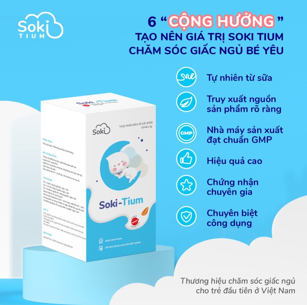 Soki-Tium là sản phẩm hỗ trợ chăm sóc giấc ngủ cho trẻ nhỏ được phát triển theo định hướng khoa học và minh bạch. Sản phẩm sử dụng nguồn nguyên liệu từ sữa tự nhiên, được nhập khẩu từ các nhà cung cấp quốc tế có kiểm định chất lượng rõ ràng và sản xuất tại nhà máy đạt tiêu chuẩn GMP. Thông tin về nguồn gốc nguyên liệu và quy trình sản xuất được công khai, cho phép phụ huynh tra cứu theo từng lô sản phẩm.